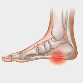 Di che cosa si tratta? Presto detto, è un’infiammazione molto dolorosa della fascia plantare, più o meno nella zona evidenziata di rosso della figura: